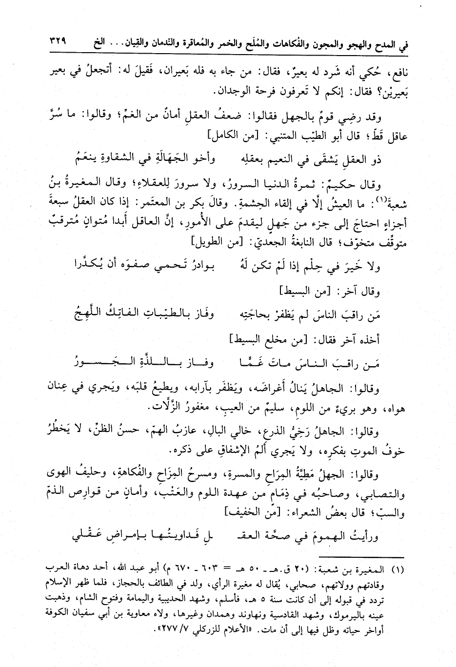 وقالوا : الجهل مطية المراح والمسرة ، ومسرح المزاح والفكاهة ، وحليف الهوى والتصابي ، وصاحبه في ذمامٍ من عهده اللوم والعتب ، وأمانٍ من قوارص الذم والسب ، قال بعض الشعراء :