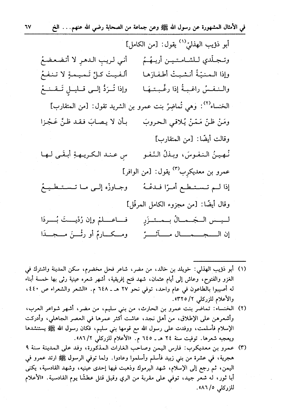 الخنساء : وهي تماضر بنت عمرو بن الشريد تقول