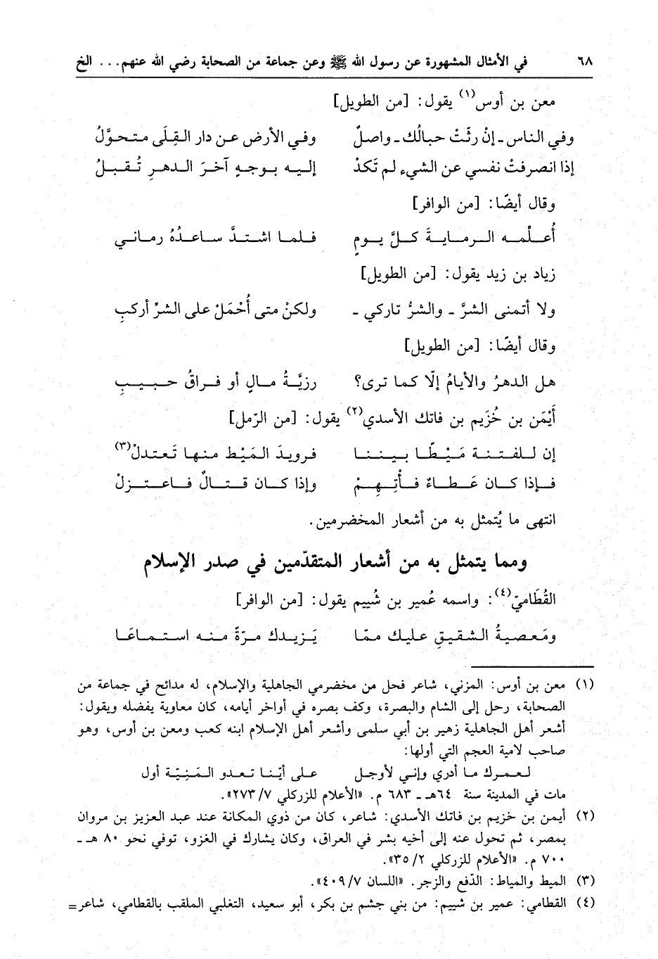 ومما يتمثل به من أشعار صدر الإسلام