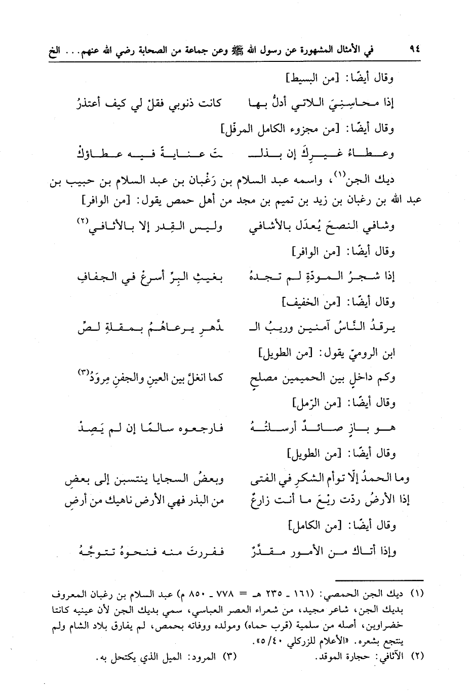 ديك الجن ، واسمه عبد السلام بن رغبان بن عبد السلام بن حبيب بن عبد الله ابن رغبان بن زيد بن تميم بن مجد من أهل حمص يقول