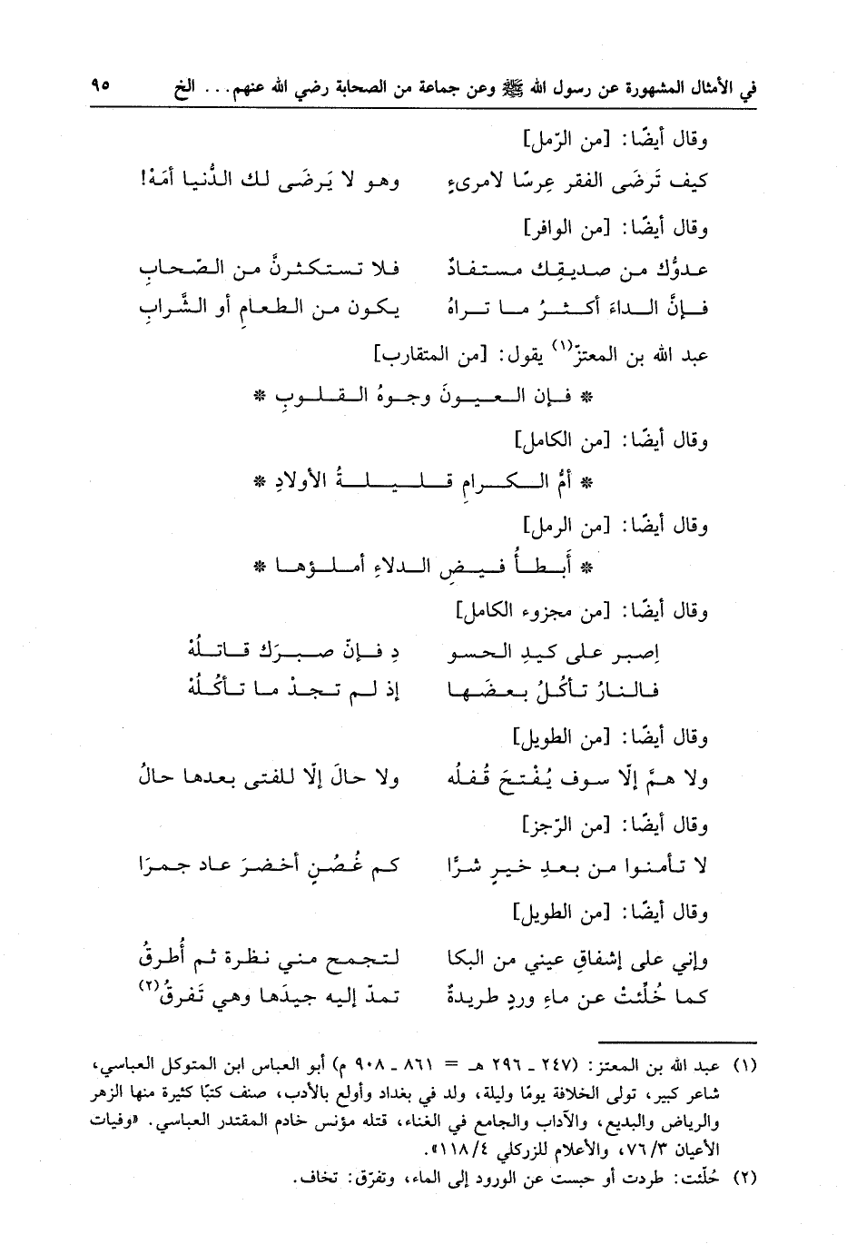 عبد الله بن المعتز يقول