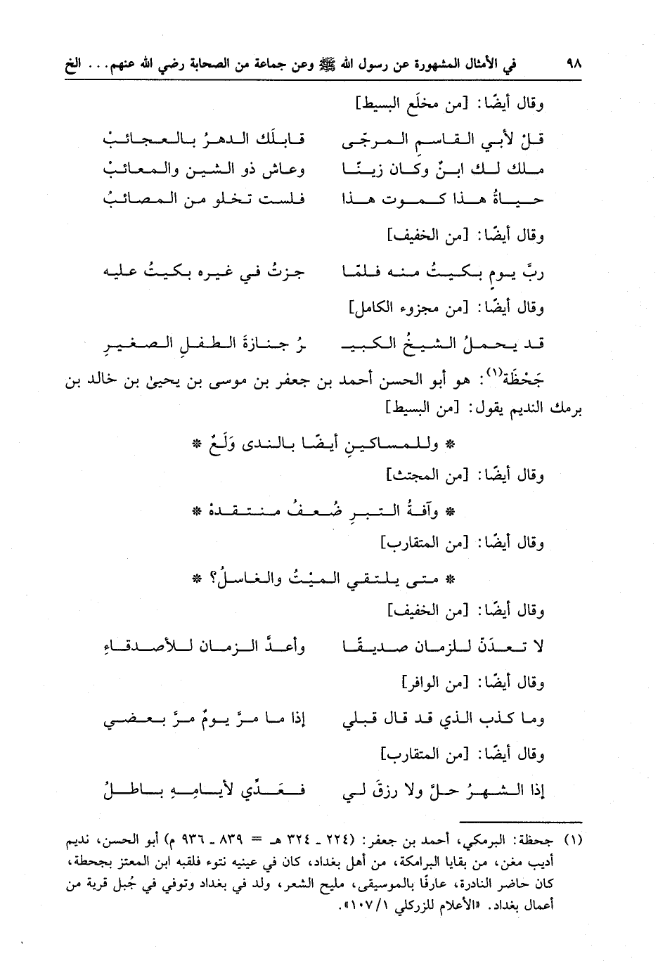 جحظة : هو أبو الحسن أحمد بن جعفر بن موسى بن يحيى بن خالد بن برمك النديم يقول :