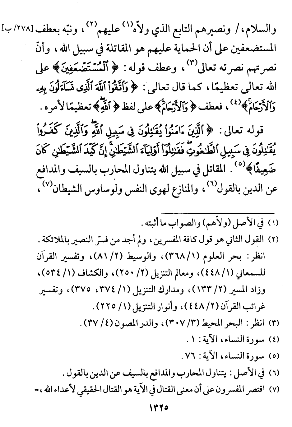 قوله تعالى: (الَّذِينَ آمَنُوا يُقَاتِلُونَ فِي سَبِيلِ اللَّهِ وَالَّذِينَ كَفَرُوا يُقَاتِلُونَ فِي سَبِيلِ الطَّاغُوتِ فَقَاتِلُوا أَوْلِيَاءَ الشَّيْطَانِ إِنَّ كَيْدَ الشَّيْطَانِ كَانَ ضَعِيفًا (76)
