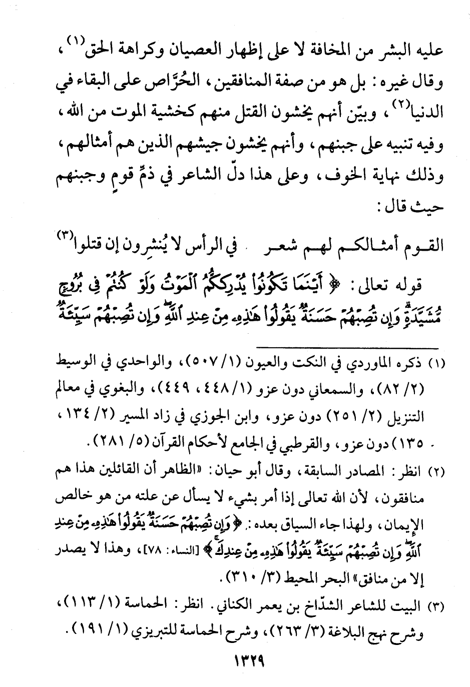 وذلك نهاية الخوف، وعلى هذا دلّ الشاعر في ذمّ قومٍ وجبنهم