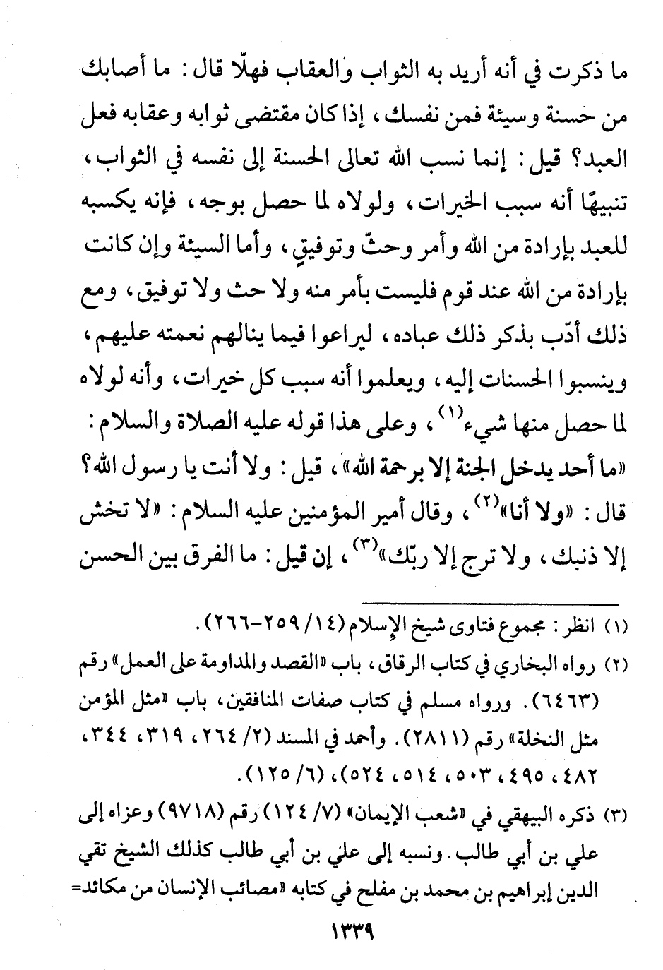 "ما أحد يدخل الجنة إلا برحمة الله ".
