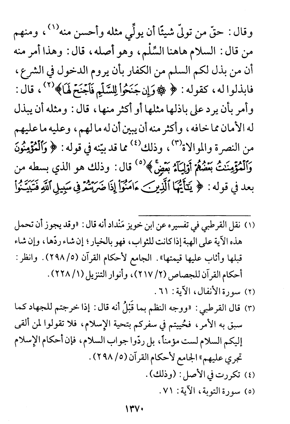 قال: ومثله أن يبذل له الأمان مما خافه، وأكثر منه أن يبين أن له ما لهم، وعليه ما عليهم من النصرة والموالاة، وذلك مما قد بيّنه في قوله: (وَالْمُؤْمِنُونَ وَالْمُؤْمِنَاتُ بَعْضُهُمْ أَوْلِيَاءُ بَعْضٍ).