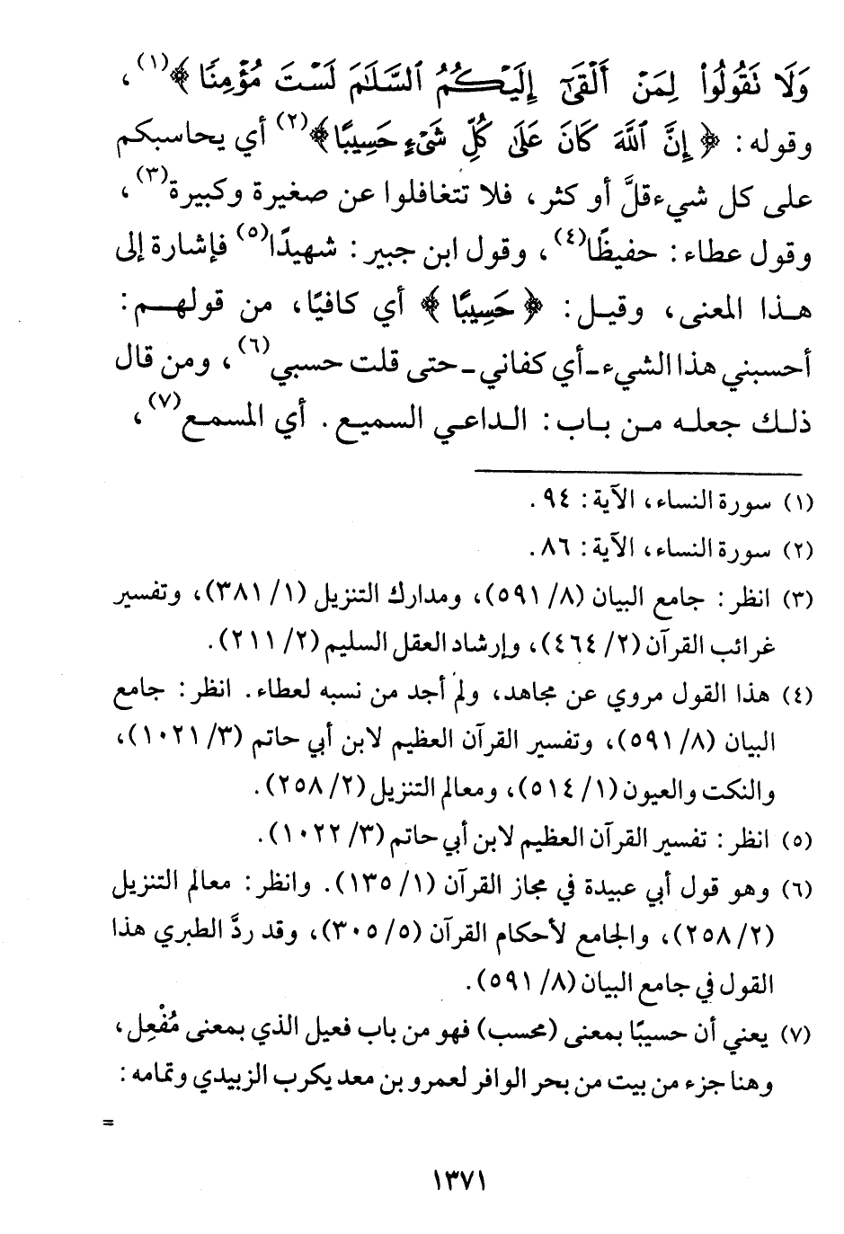 وقوله: (إِنَّ اللَّهَ كَانَ عَلَى كُلِّ شَيْءٍ حَسِيبًا) أي يحاسبكم