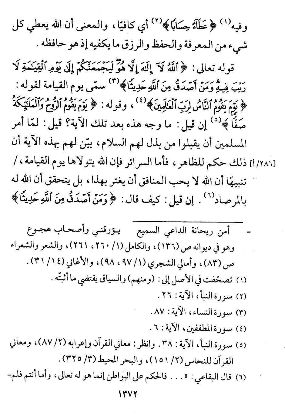 وفيه (عَطَاءً حِسَابًا) أي كافيًا، والمعنى أن الله يعطي كل
