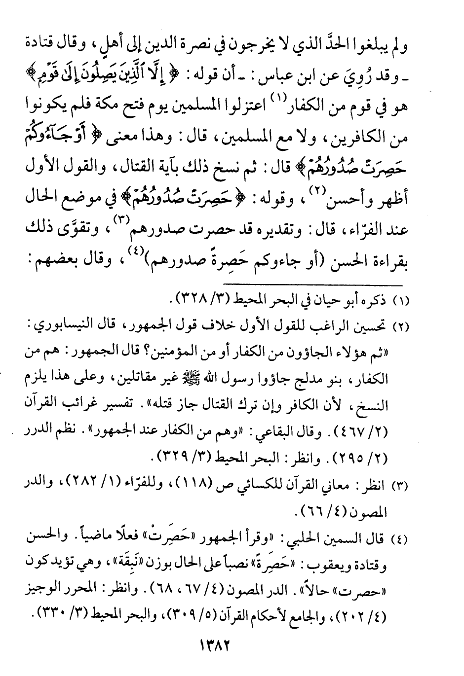 وقوله: (حَصِرَتْ صُدُورُهُمْ) في موضع الحال عند الفرّاء.