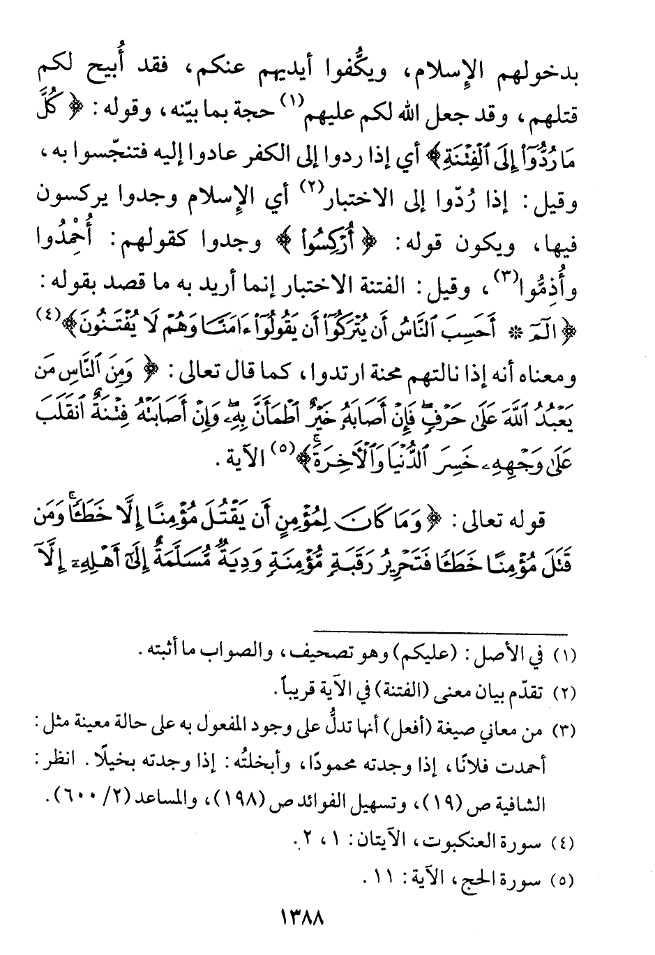 ومعناه أنه إذا نالتهم محنة ارتدوا، كما قال تعالى: (وَمِنَ النَّاسِ مَنْ يَعْبُدُ اللَّهَ عَلَى حَرْفٍ فَإِنْ أَصَابَهُ خَيْرٌ اطْمَأَنَّ بِهِ وَإِنْ أَصَابَتْهُ فِتْنَةٌ انْقَلَبَ عَلَى وَجْهِهِ خَسِرَ الدُّنْيَا وَالْآخِرَةَ) الآية.