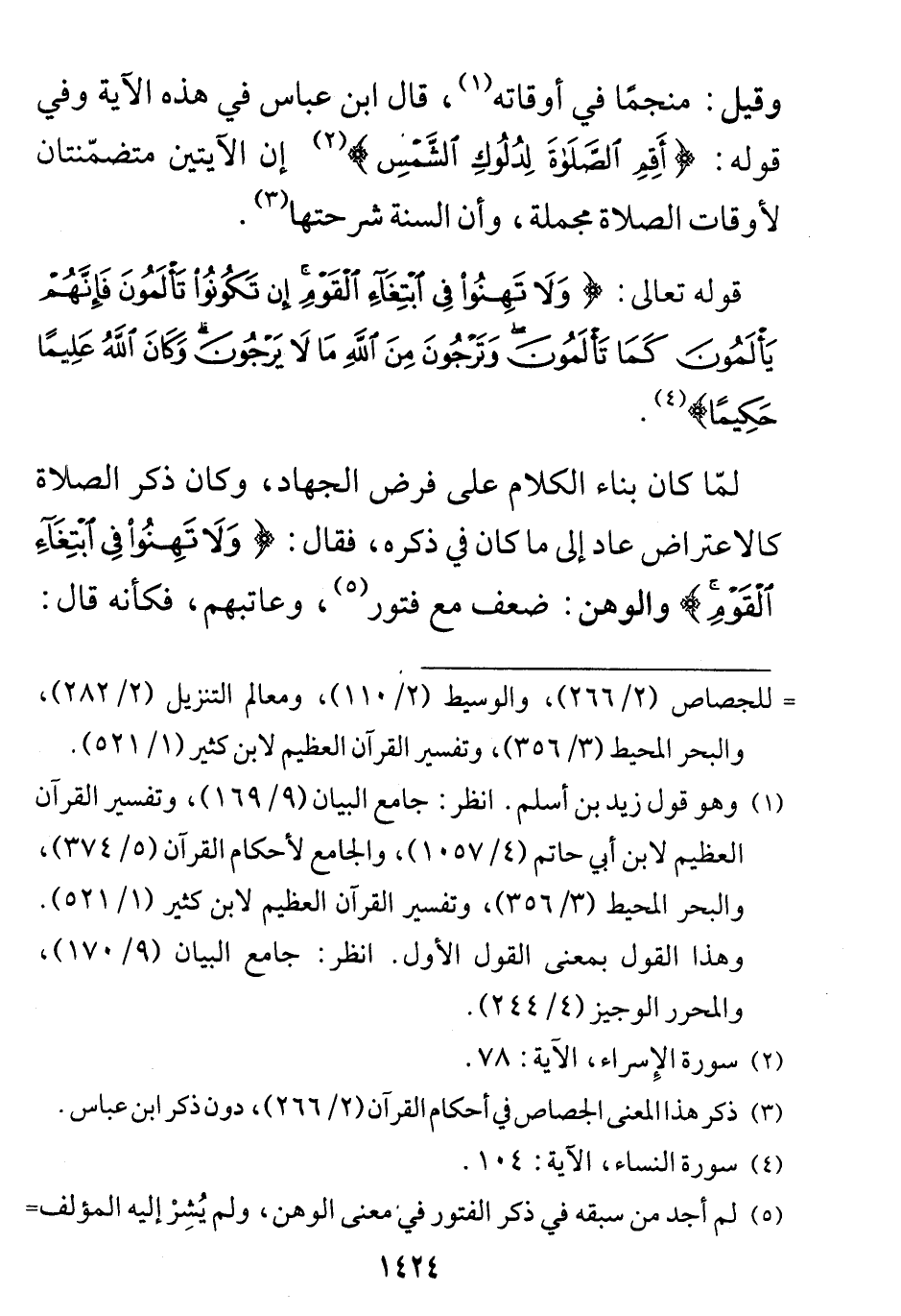كالاعتراض عاد إلى ما كان في ذكره، فقال: (وَلَا تَهِنُوا فِي ابْتِغَاءِ الْقَوْمِ) والوهن: ضعف مع فتور)، وعاتبهم، فكأنه قال: