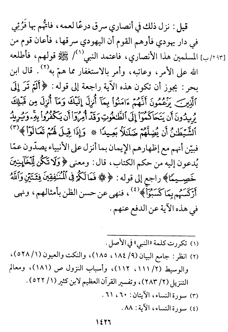 المسلمين هذا الأنصاري، فاعتمد النبي - صلى الله عليه وسلم - قولهم، فأطلعه الله على الأمر، وعاتبه، وأمر بالاستغفار مما همّ به.