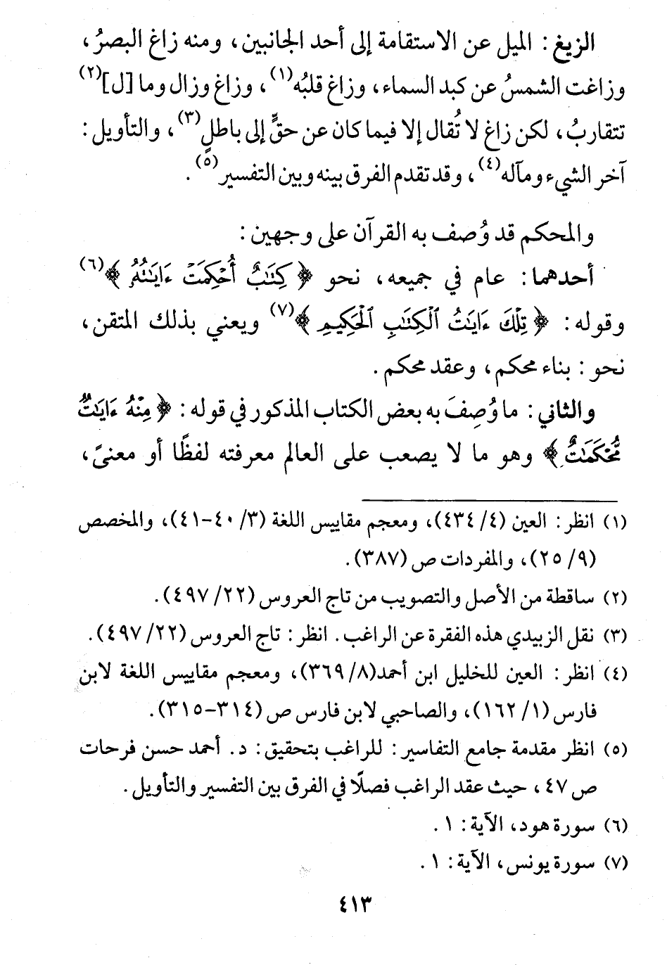 والثاني: ما وُصِفَ به بعض الكتاب المذكور في قوله: (مِنْهُ آيَاتٌ مُحْكَمَاتٌ) وهو ما لا يصعب على العالم معرفته لفظًا أو معنىً،