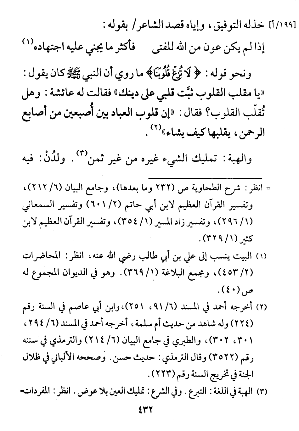 ونحو قوله: (لَا تُزِغْ قُلُوبَنَا) ما روي أن النبي - صلى الله عليه وسلم - كان يقول: "يا مقلب القلوب ثبَّت قلبي على دينك"