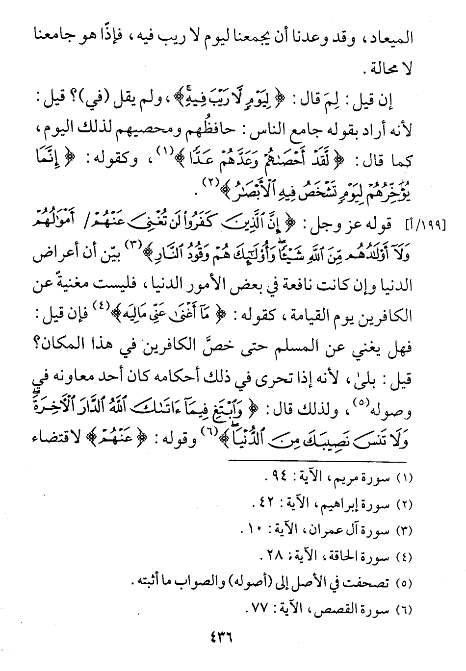 إن قيل: لِمَ قال: (لِيَوْمٍ لَا رَيْبَ فِيهِ)، ولم يقل (في)؟