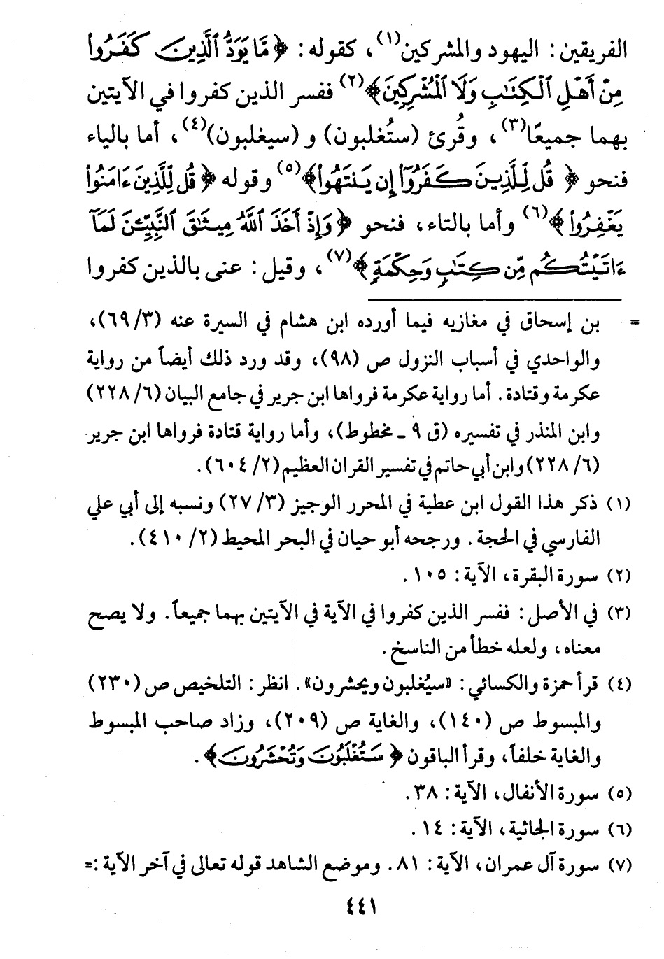 وقُرئ (ستُغلبون) و (سيغلبون)، أما بالياء فنحو (قُلْ لِلَّذِينَ كَفَرُوا إِنْ يَنْتَهُوا) وقوله (قُلْ لِلَّذِينَ آمَنُوا يَغْفِرُوا)