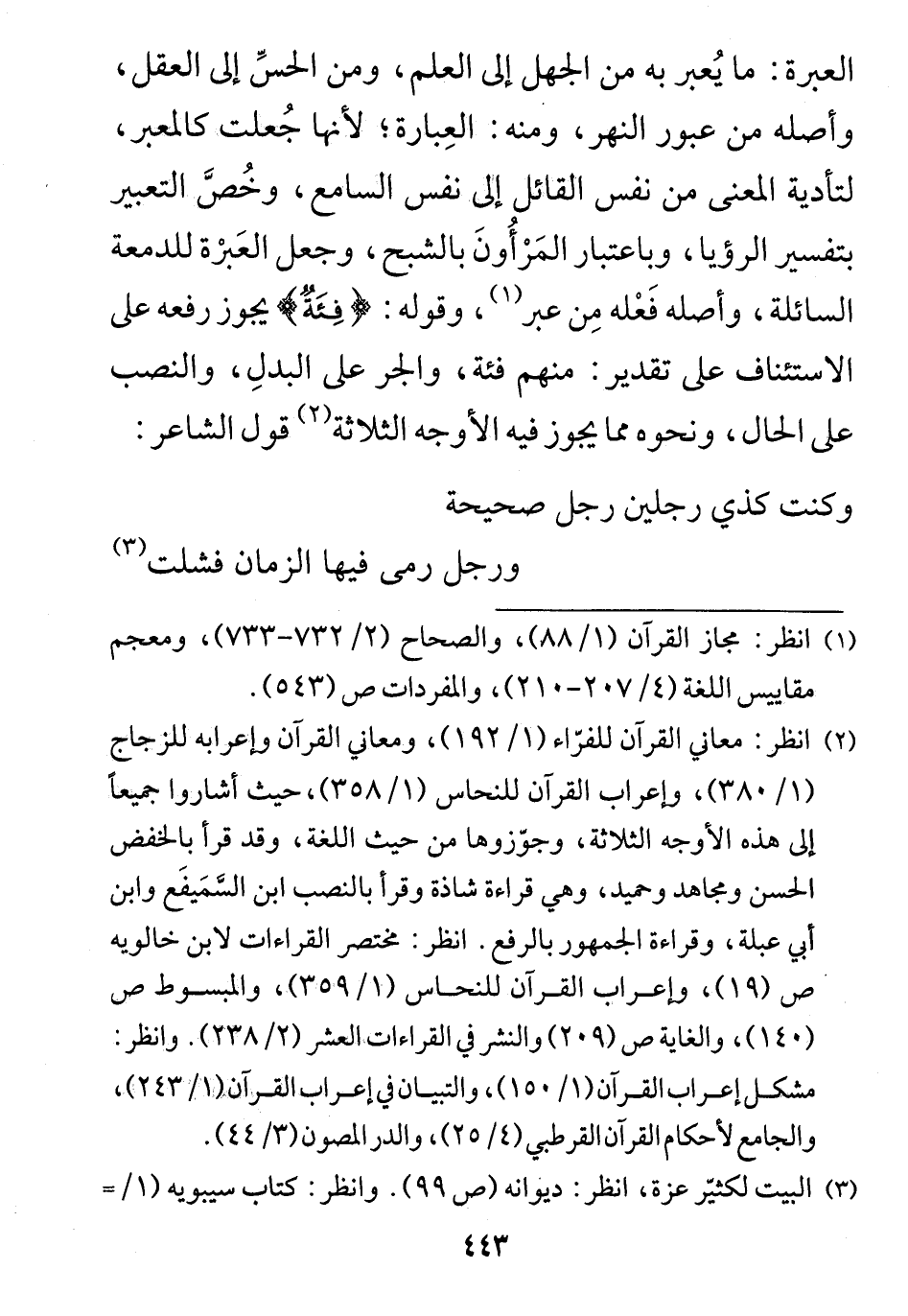 العبرة: ما يُعبر به من الجهل إلى العلم، ومن الحسِّ إلى العقل.