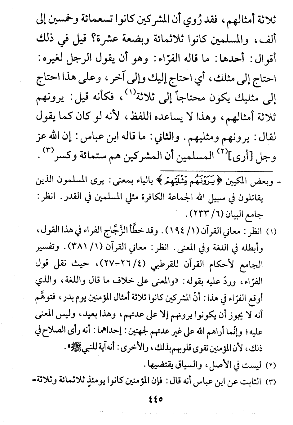 ثلاثة أمثالهم، وهذا لا يساعده اللفظ، لأنه لو كان كما يقول