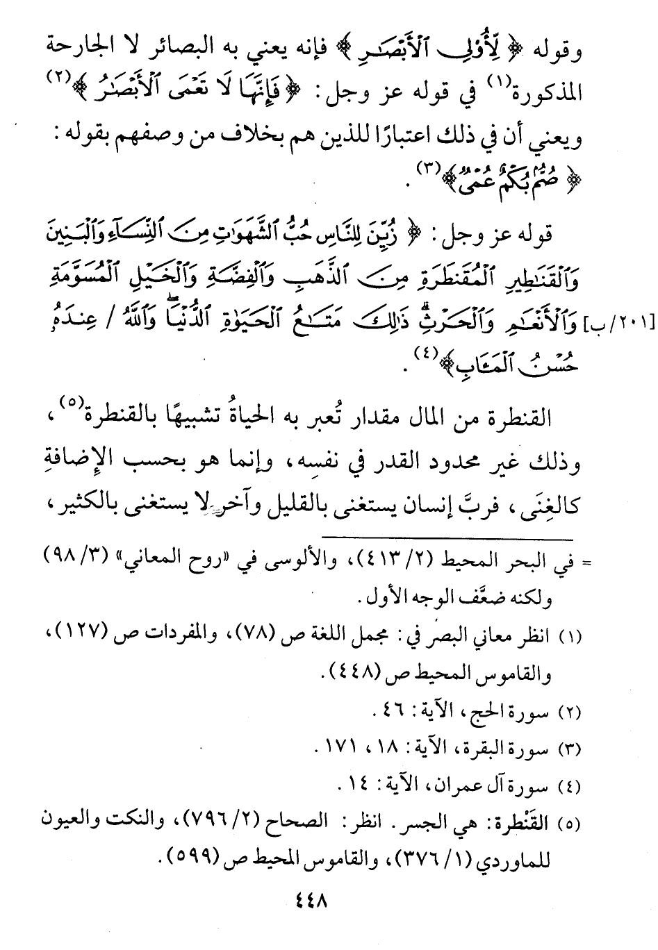 القنطرة من المال مقدار تُعبر به الحياةُ تشبيهًا بالقنطرة.