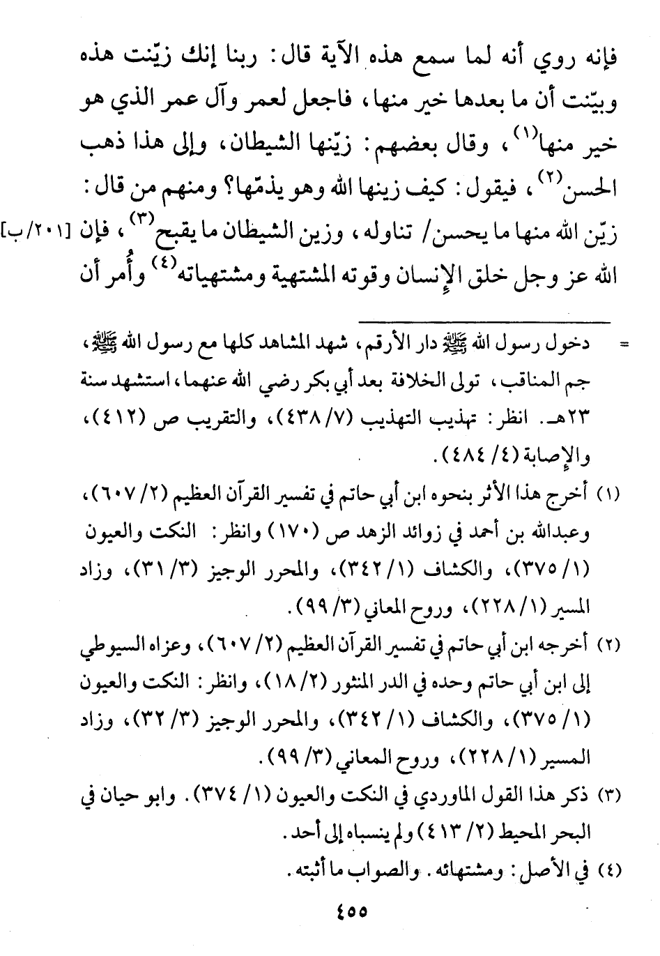ومنهم من قال: زيّن الله منها ما يحسن تناوله، وزين الشيطان ما يقبح، فإن الله عز وجل خلق الإِنسان وقوته المشتهية ومشتهياته وأُمر أن