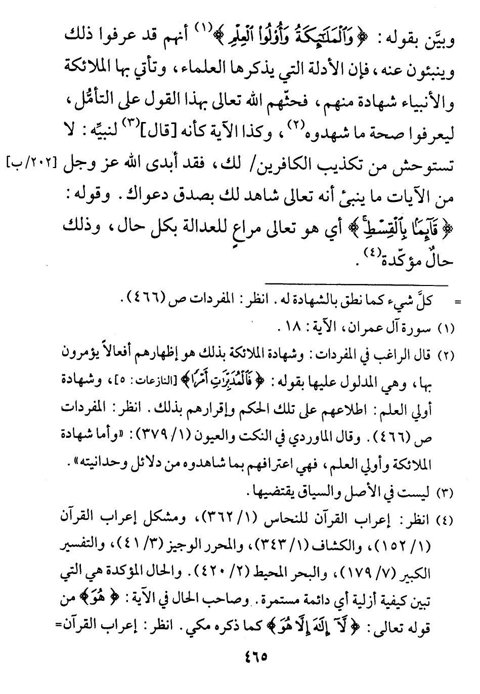 وقوله: (قَائِمًا بِالْقِسْطِ) أي هو تعالى مراعٍ للعدالة بكل حال، وذلك