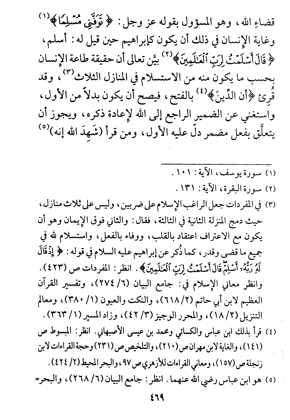 قضاءِ ألله، وهو المسؤول بقوله عز وجل: (تَوَفَّنِي مُسْلِمًا)