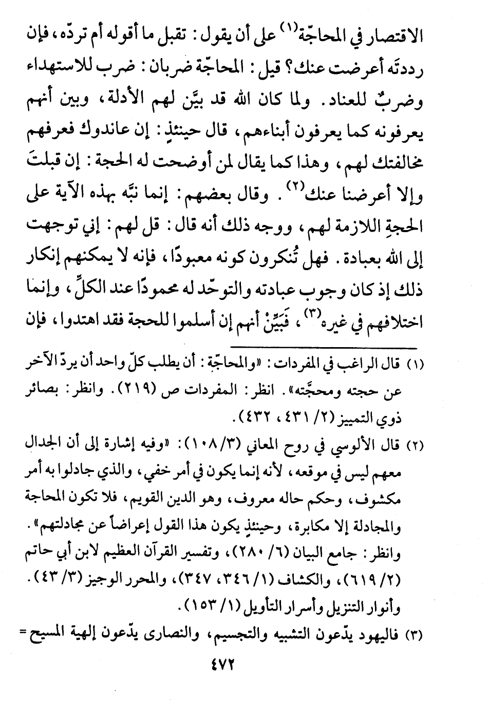 الاقتصار في المحاجّة على أن يقول: تقبل ما أقوله أم تردّه، فإن