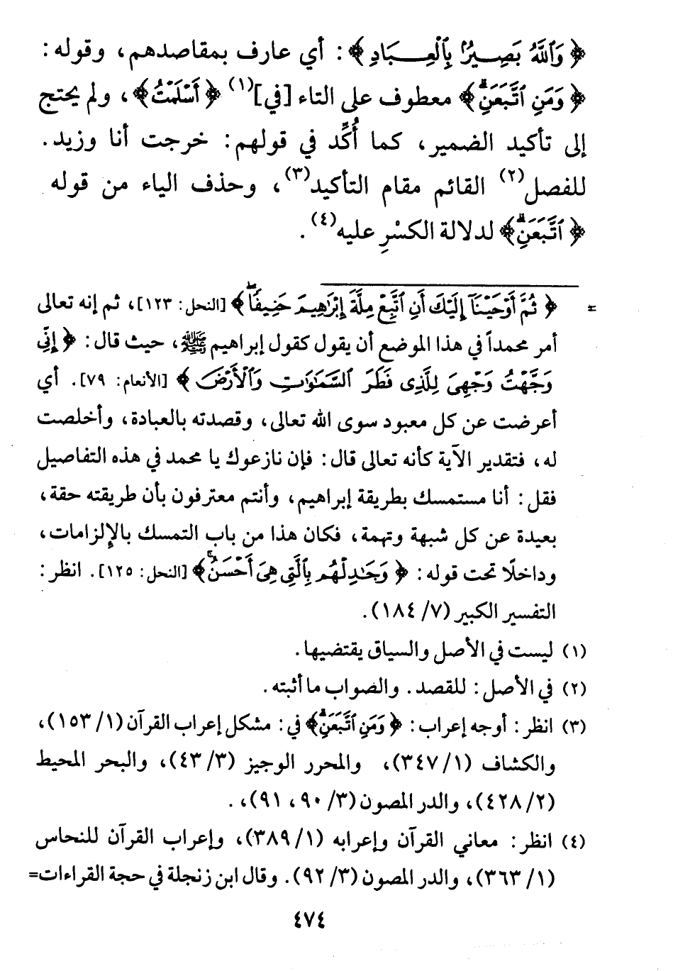 وقوله: (وَمنِ اَتبَعَنِ) معطوف على التاء أي، (أَسْلَمْتُ).