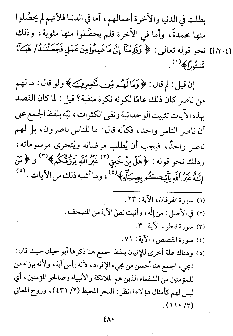 قوله تعالى: (وَقَدِمْنَا إِلَى مَا عَمِلُوا مِنْ عَمَلٍ فَجَعَلْنَاهُ هَبَاءً مَنْثُورًا).
