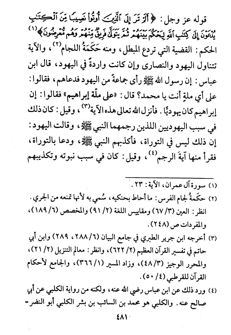 قوله عز وجل: (أَلَمْ تَرَ إِلَى الَّذِينَ أُوتُوا نَصِيبًا مِنَ الْكِتَابِ يُدْعَوْنَ إِلَى كِتَابِ اللَّهِ لِيَحْكُمَ بَيْنَهُمْ ثُمَّ يَتَوَلَّى فَرِيقٌ مِنْهُمْ وَهُمْ مُعْرِضُونَ (23)