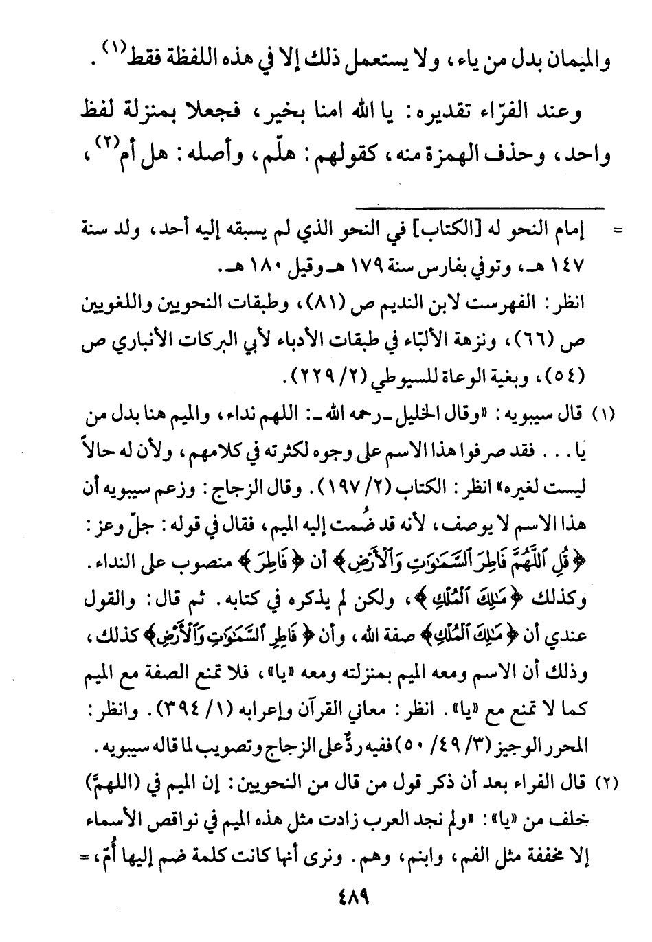 والميمان بدل من ياء، ولا يستعمل ذلك إلا في هذه اللفظة فقط.