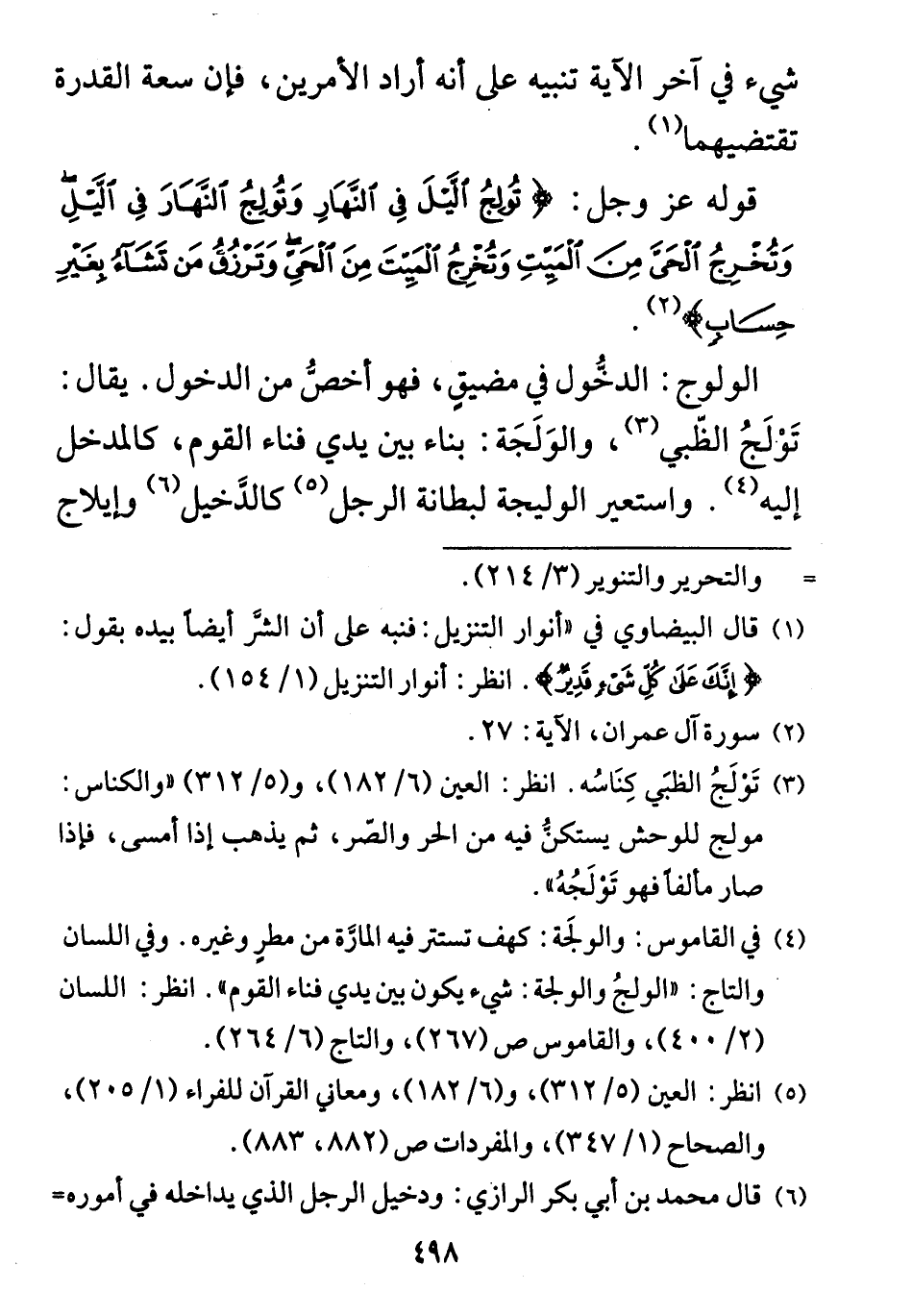 قوله عز وجل: (تُولِجُ اللَّيْلَ فِي النَّهَارِ وَتُولِجُ النَّهَارَ فِي اللَّيْلِ وَتُخْرِجُ الْحَيَّ مِنَ الْمَيِّتِ وَتُخْرِجُ الْمَيِّتَ مِنَ الْحَيِّ وَتَرْزُقُ مَنْ تَشَاءُ بِغَيْرِ حِسَابٍ (27).