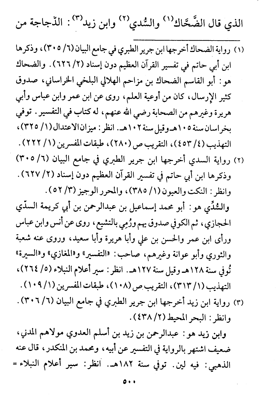 الذي قال الضَحاك والسدي وابن زيد: الدّجاجة من