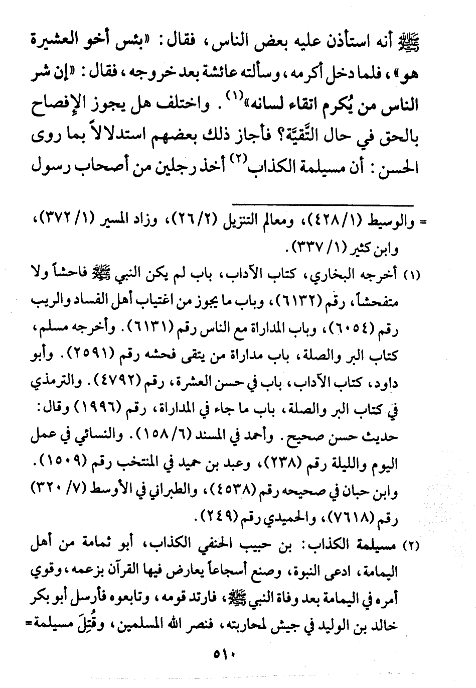 أنه استأذن عليه بعض الناس، فقال: "بئس أخو العشيرة