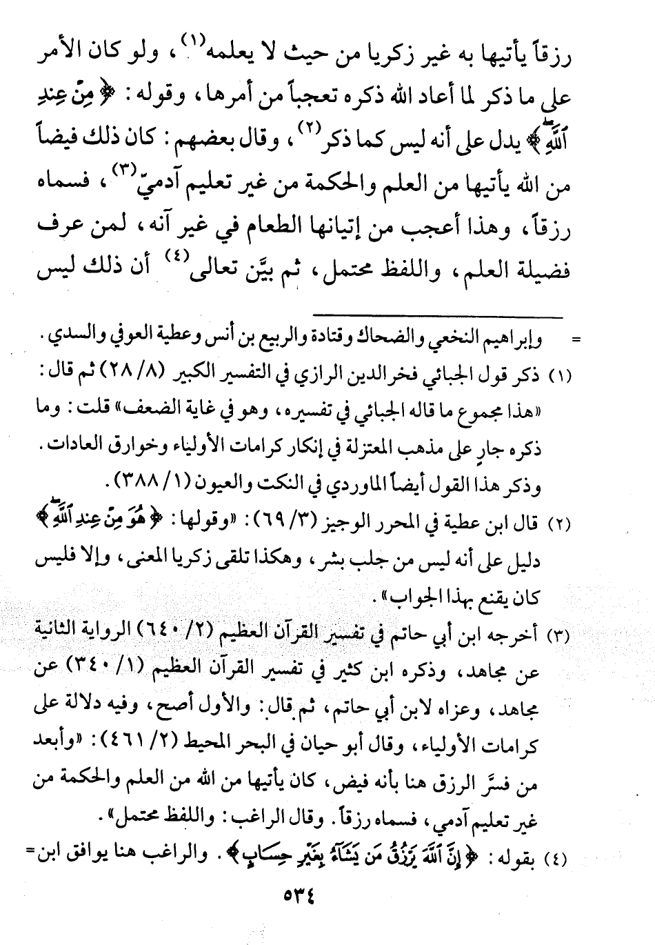 وقال بعضهم: كان ذلك فيضاً من الله يأتيها من العلم والحكمة من غير تعليم آدمي، فسماه رزقاً، وهذا أعجب من إتيانها الطعام في غير أنه، لمن عرف
