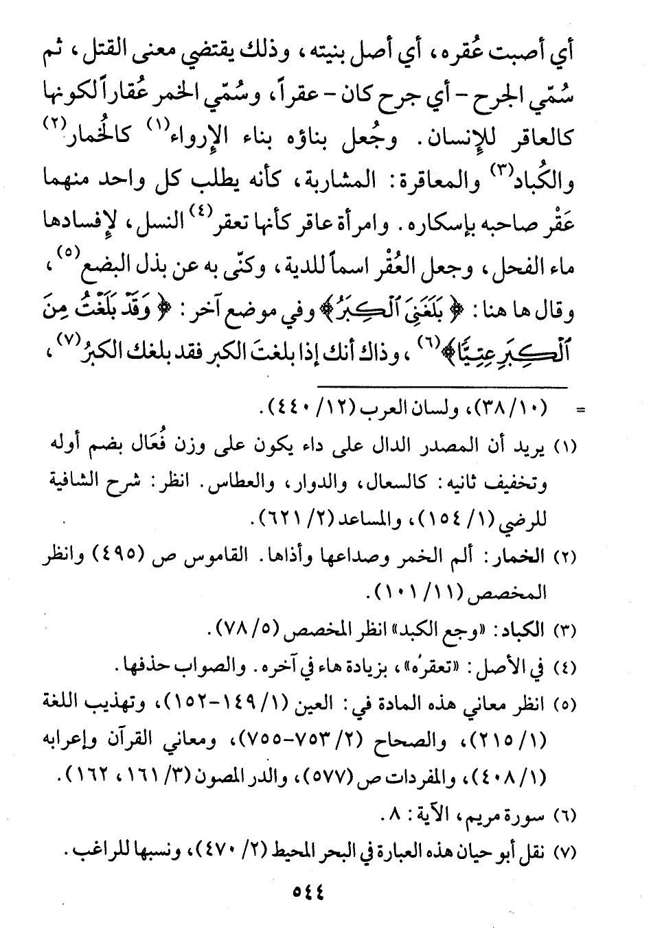 سمي الجرح - أي جرح كان - عقراً، وسُمي الخمر عُقاراً لكونها