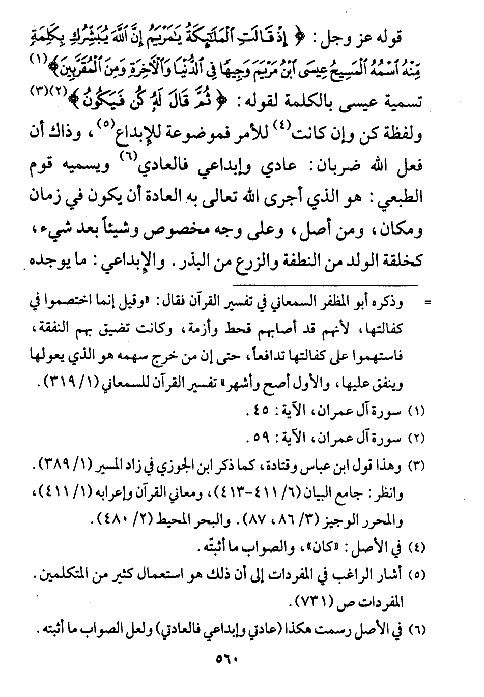 تسمية عيسى بالكلمة لقوله: (ثُمَّ قَالَ لَهُ كُنْ فَيَكُونُ)