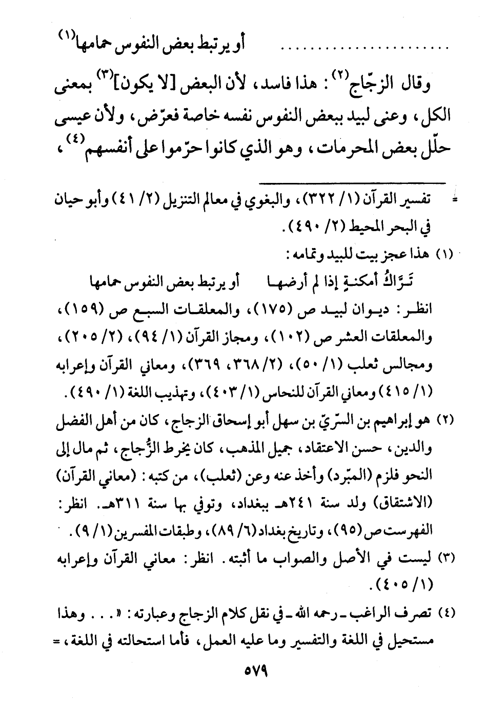 وعنى لبيد ببعض النفوس نفسه خاصة فعرّض.