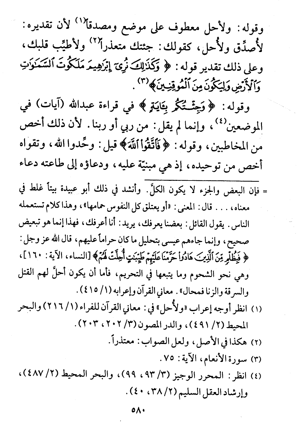 وقوله: (وَلِأُحِلَّ) معطوف على موضع (وَمُصَدِّقًا) لأن تقديره: