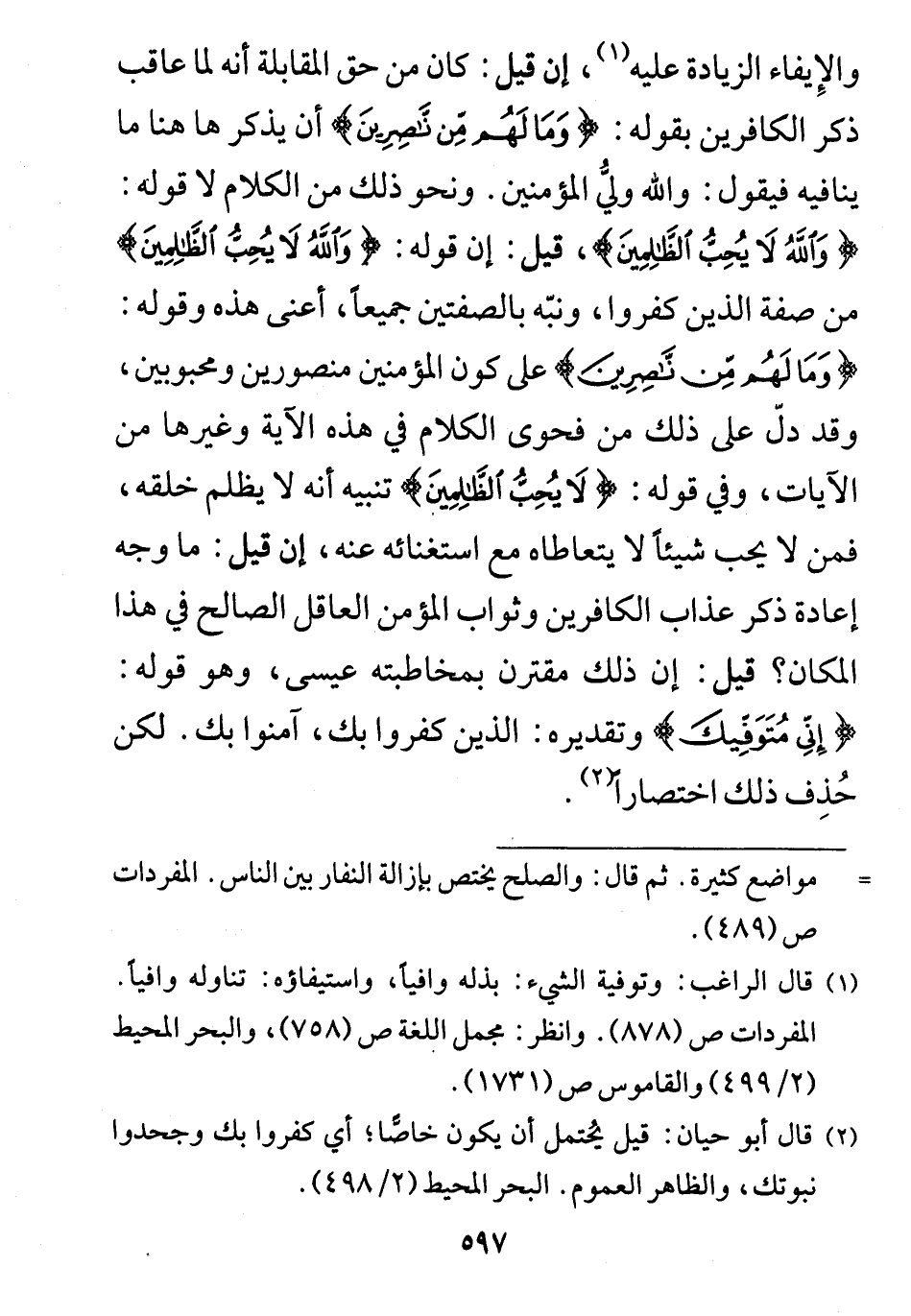 قيل: إن قوله: (وَاللَّهُ لَا يُحِبُّ الظَّالِمِينَ) من صفة الذين كفروا.