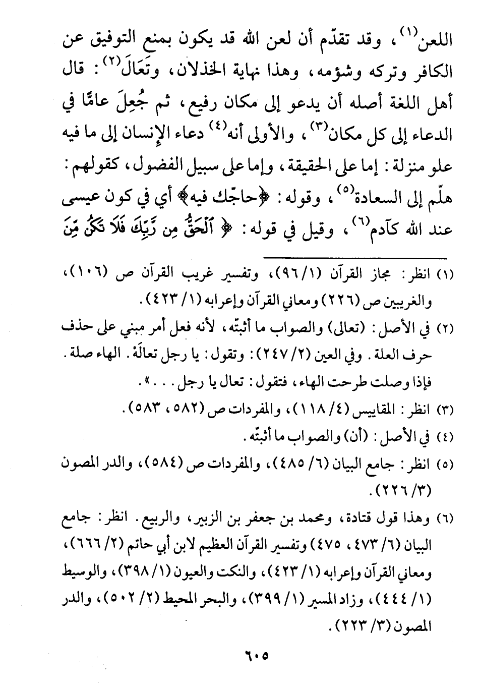 وتَعَالَ: قال أهل اللغة أصله أن يدعو إلى - مكان رفيع.