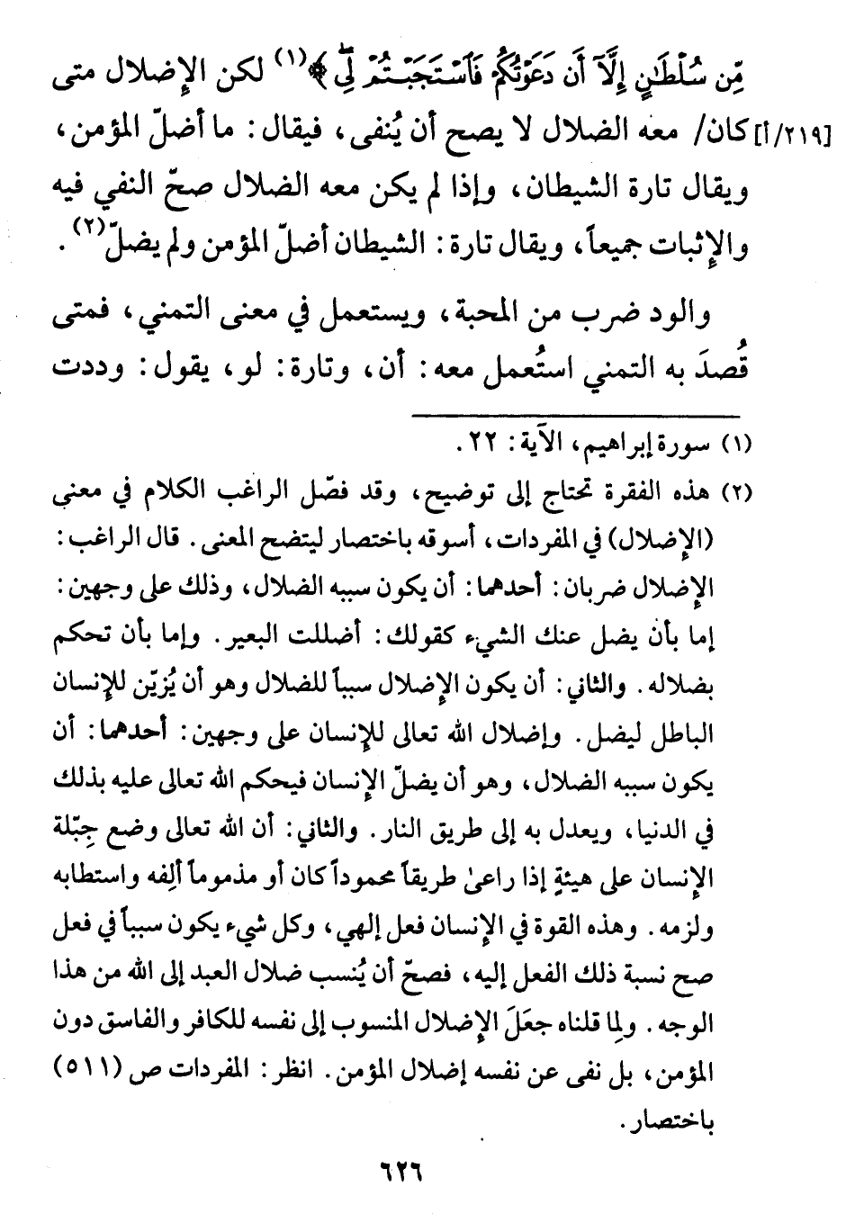 ما أضل المؤمن، ويقال تارة الشيطان، وإذا لم يكن معه الضلال صح النفي فيه والإثبات جميعا، ويقال تارة: الشيطان أضلّ المؤمن ولم يضل.