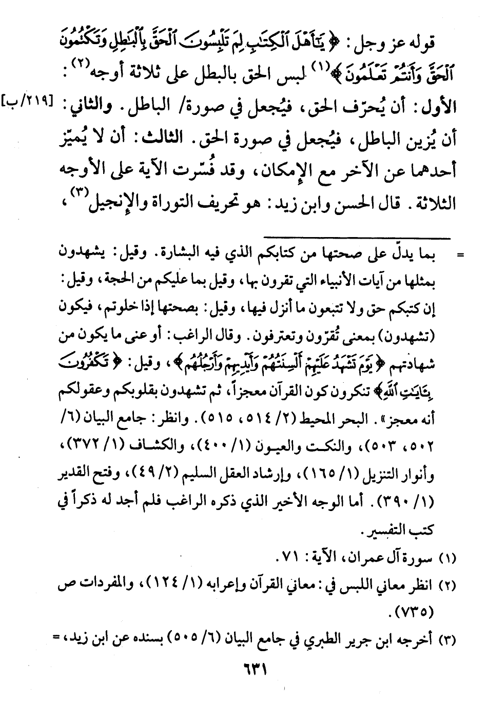 قوله عز وجل: (يَا أَهْلَ الْكِتَابِ لِمَ تَلْبِسُونَ الْحَقَّ بِالْبَاطِلِ وَتَكْتُمُونَ الْحَقَّ وَأَنْتُمْ تَعْلَمُونَ (71).