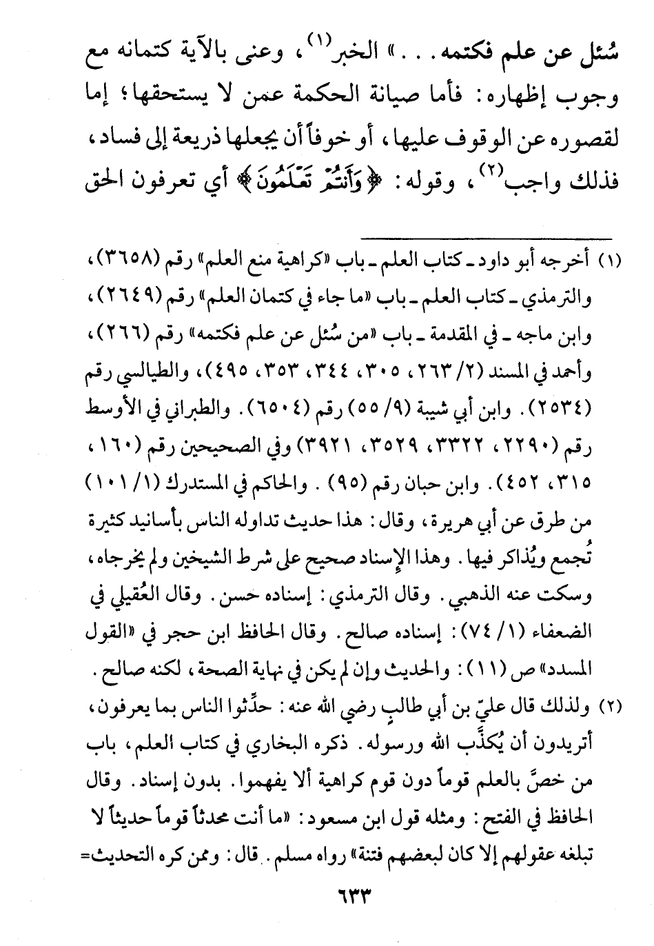 "من سُئل عن علم فكتمه. . . " الخبر، وعنى بالآية كتمانه مع
