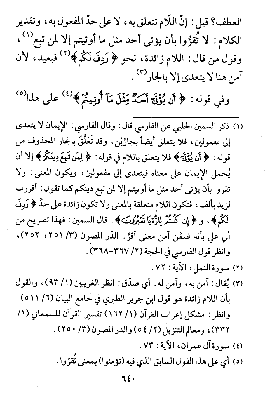 وفي قوله: (أَنْ يُؤْتَى أَحَدٌ مِثْلَ مَا أُوتِيتُمْ) على هذا