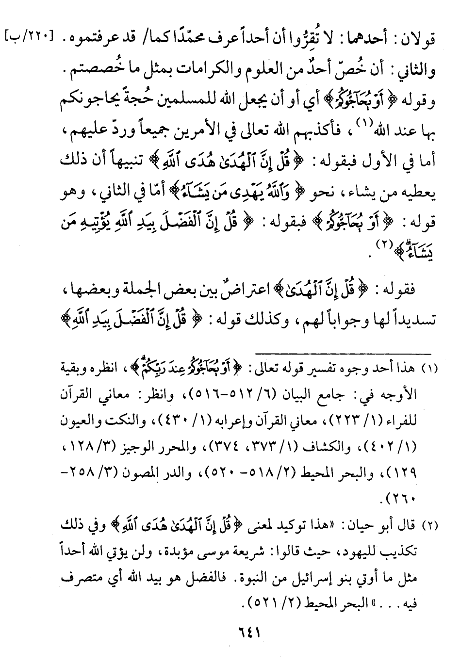 أمّا في الثاني، وهو قوله: (أَوْ يُحَاجُّوكُمْ) فبقوله: (قُلْ إِنَّ الْفَضْلَ بِيَدِ اللَّهِ يُؤْتِيهِ مَنْ يَشَاءُ).