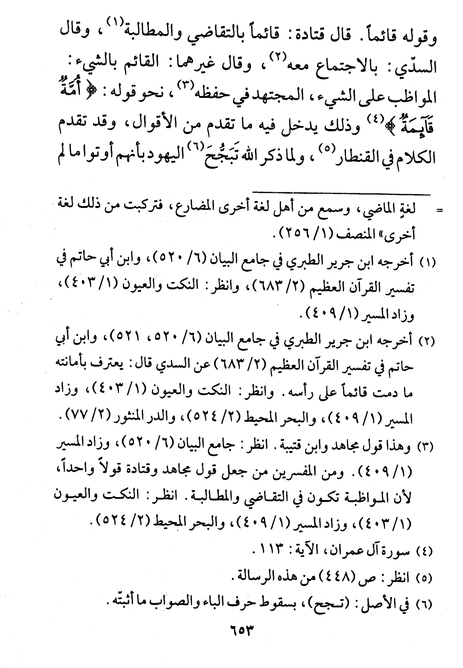 المواظب على الشيء، المجتهد في حفظه، نحو قوله: (أُمَّةٌ قَائِمَةٌ)