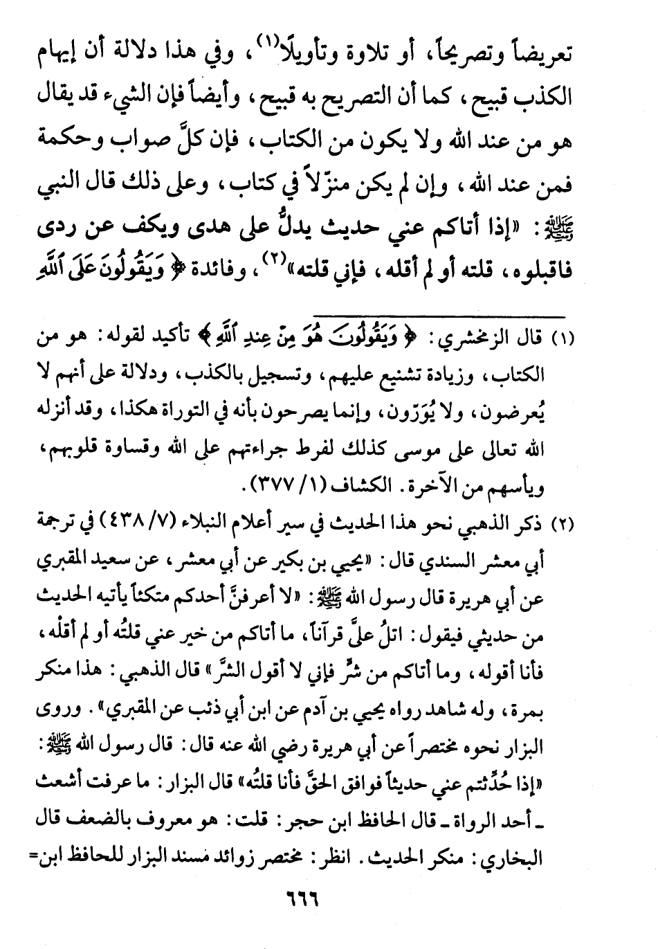 - صلى الله عليه وسلم -: "إذا أتاكم عني حديث يدل على هدى ويكف عن ردى فاقبلوه، قلته أو لم أقله، فإني قلته".