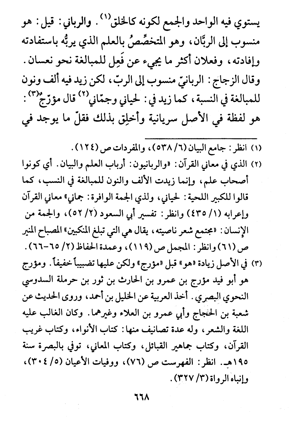 والرباني: قيل: هو منسوب إلى الربَّان، وهو المتخصصُ بالعلم الذي يربُّه باستفادته وإفادته، وفعلان أكثر ما يجيء عن فَعِل للمبالغة نحو نعسان.