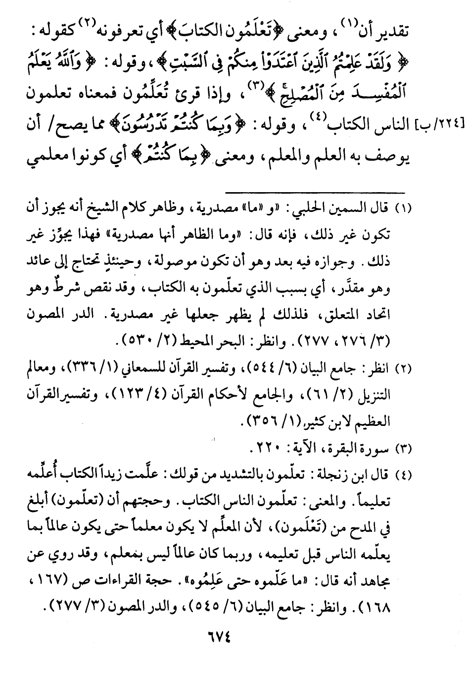 تقدير أن، ومعنى (تَعْلَمُون الكتابَ) أي تعرفونه كقوله: